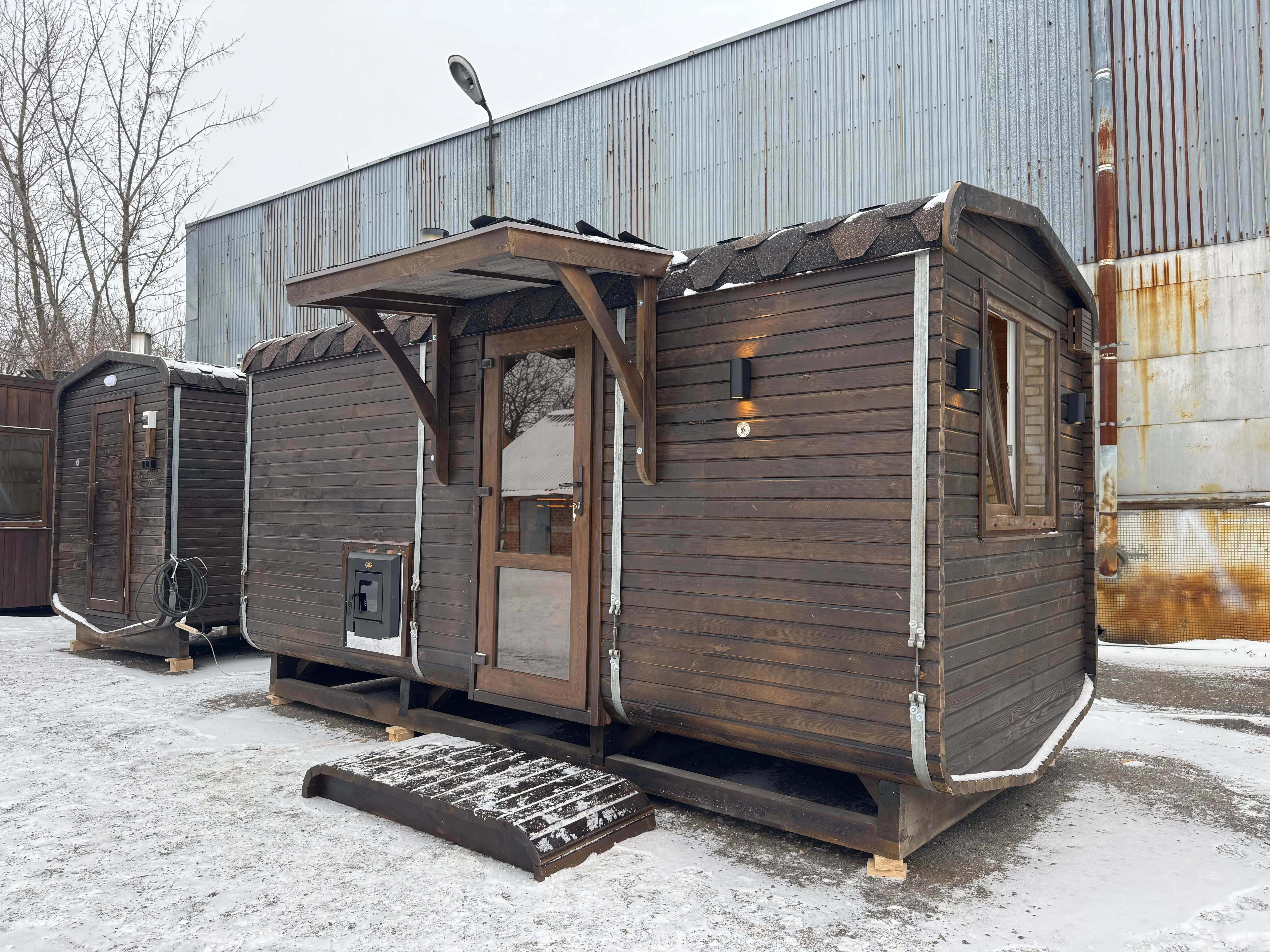 Навіс над дверима з бітумною черепицею. (Потрібен для захисту від дощу та снігу в кімнату відпочинку)