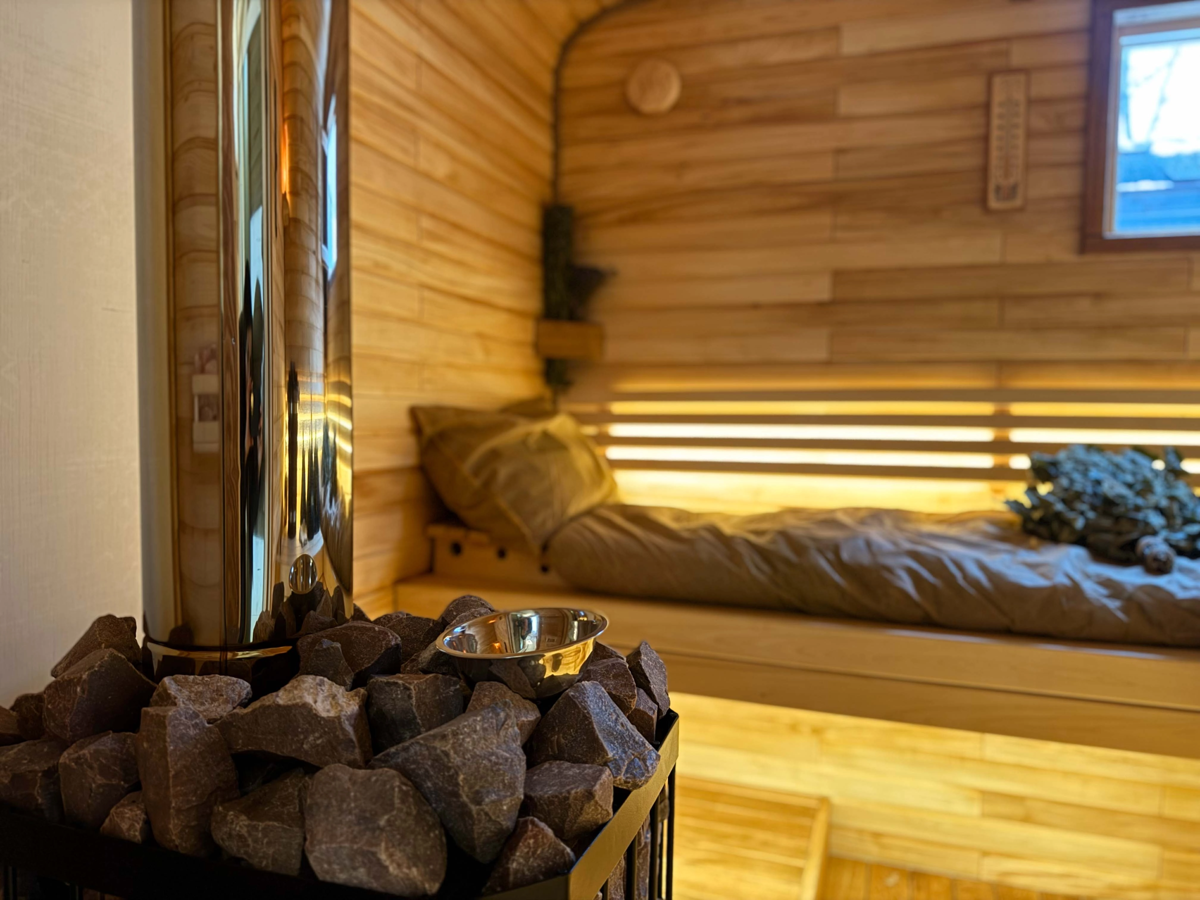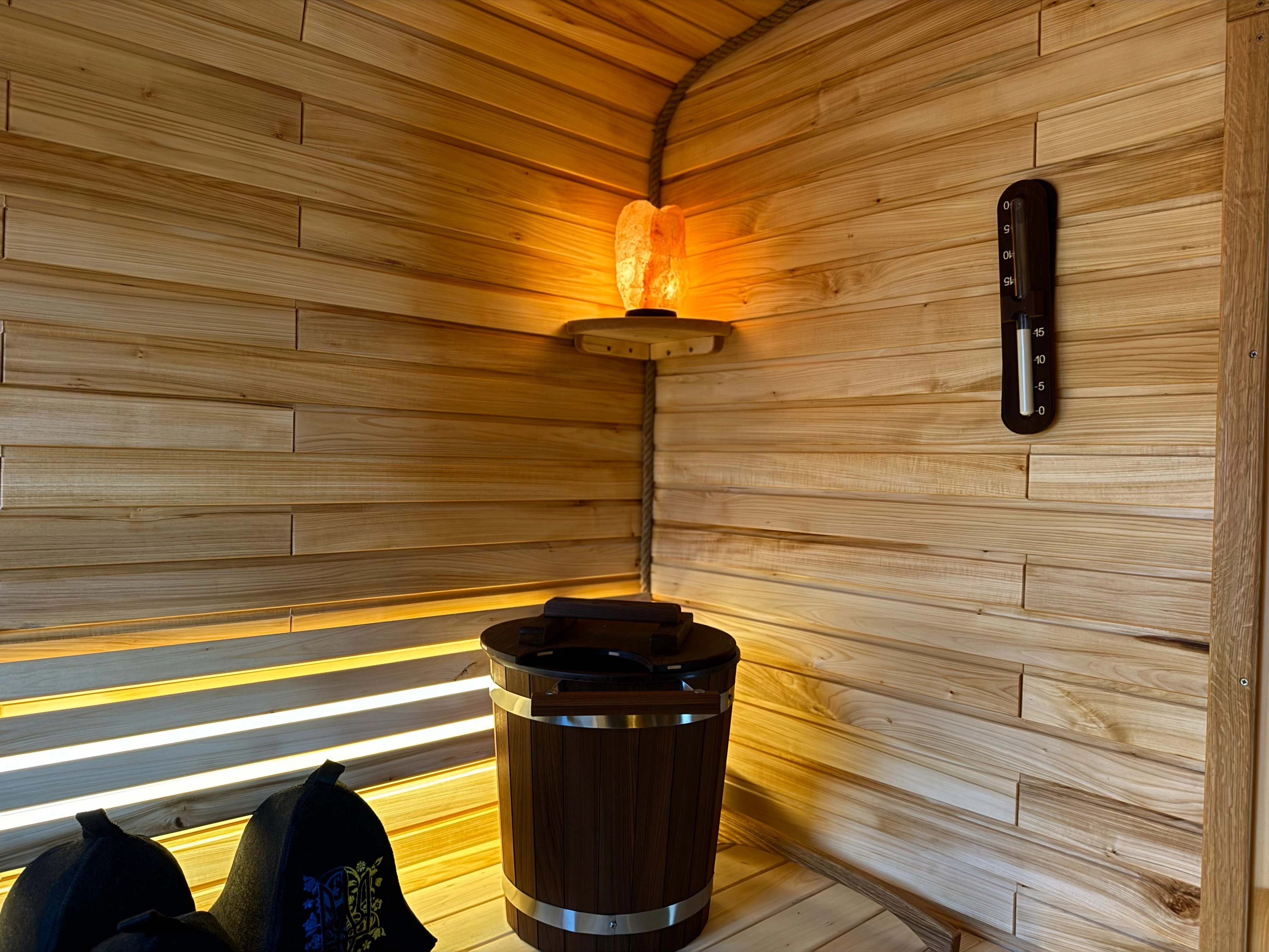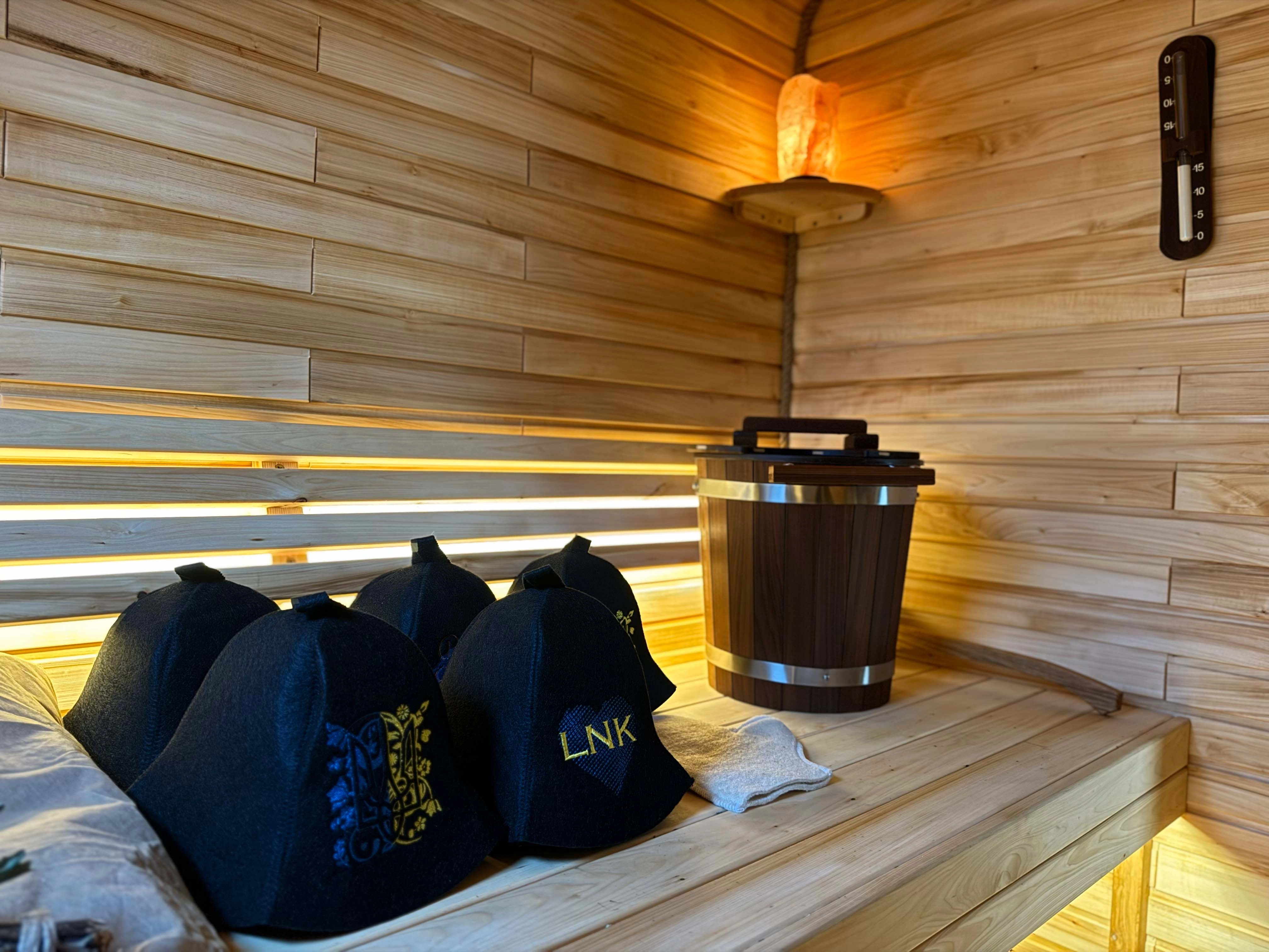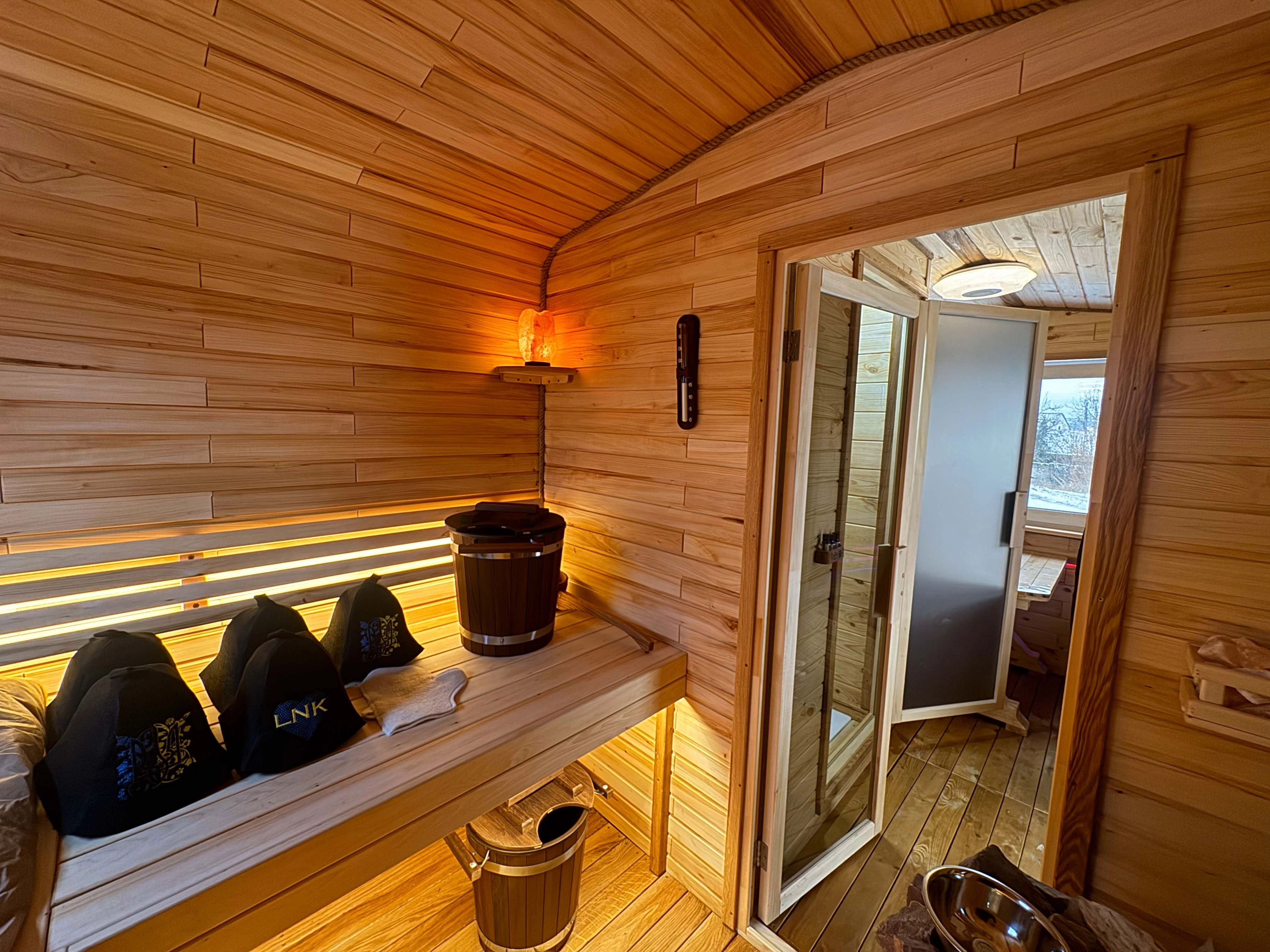 Утеплені стіни в кімнаті відпочинку Базальтовою Ватою, гідро та паро бар'єром. (Це дає додаткове утеплення в стіни для більшого комфорту відпочинку та довшого тримання тепла в кімнаті відпочинку)