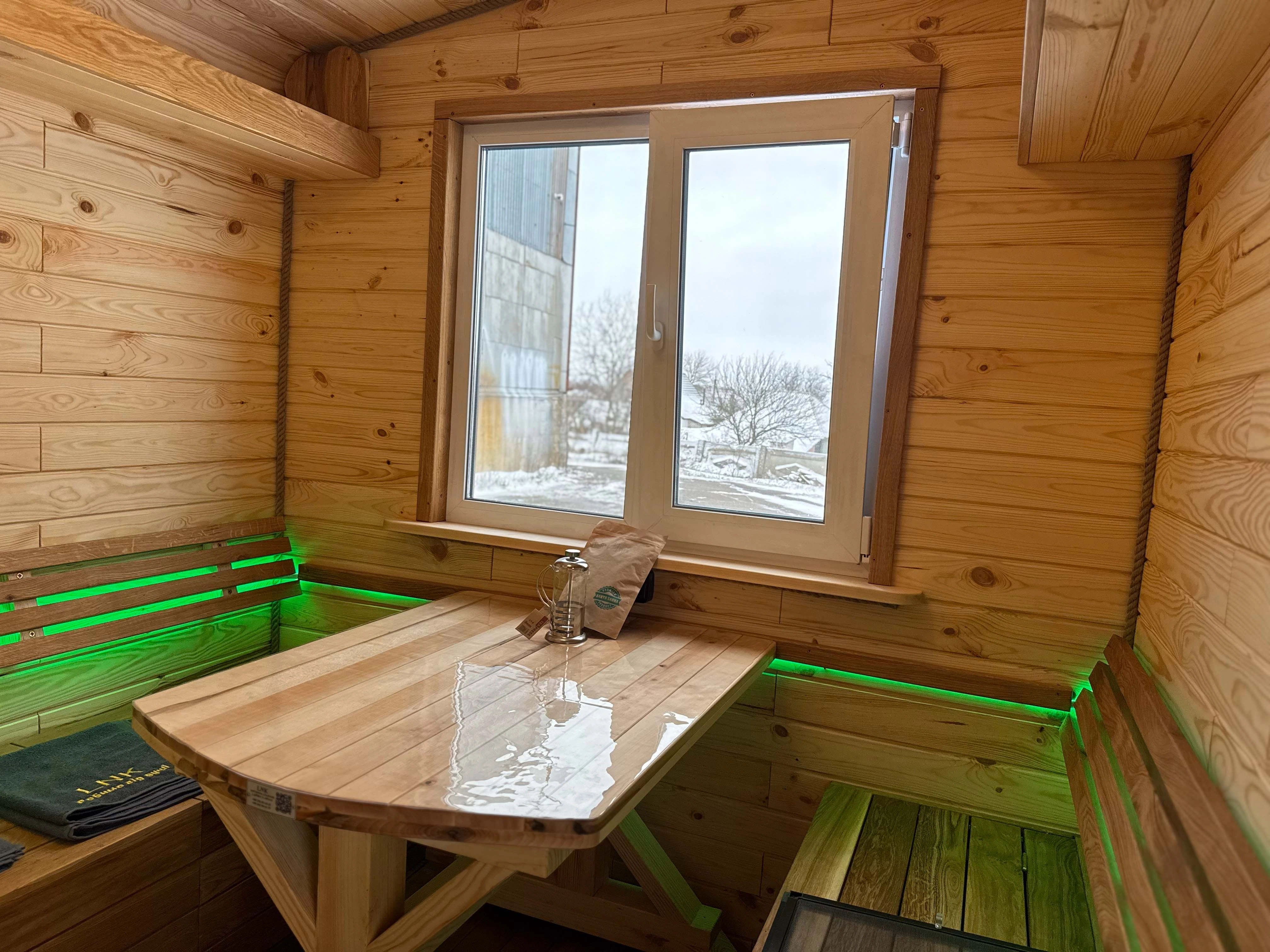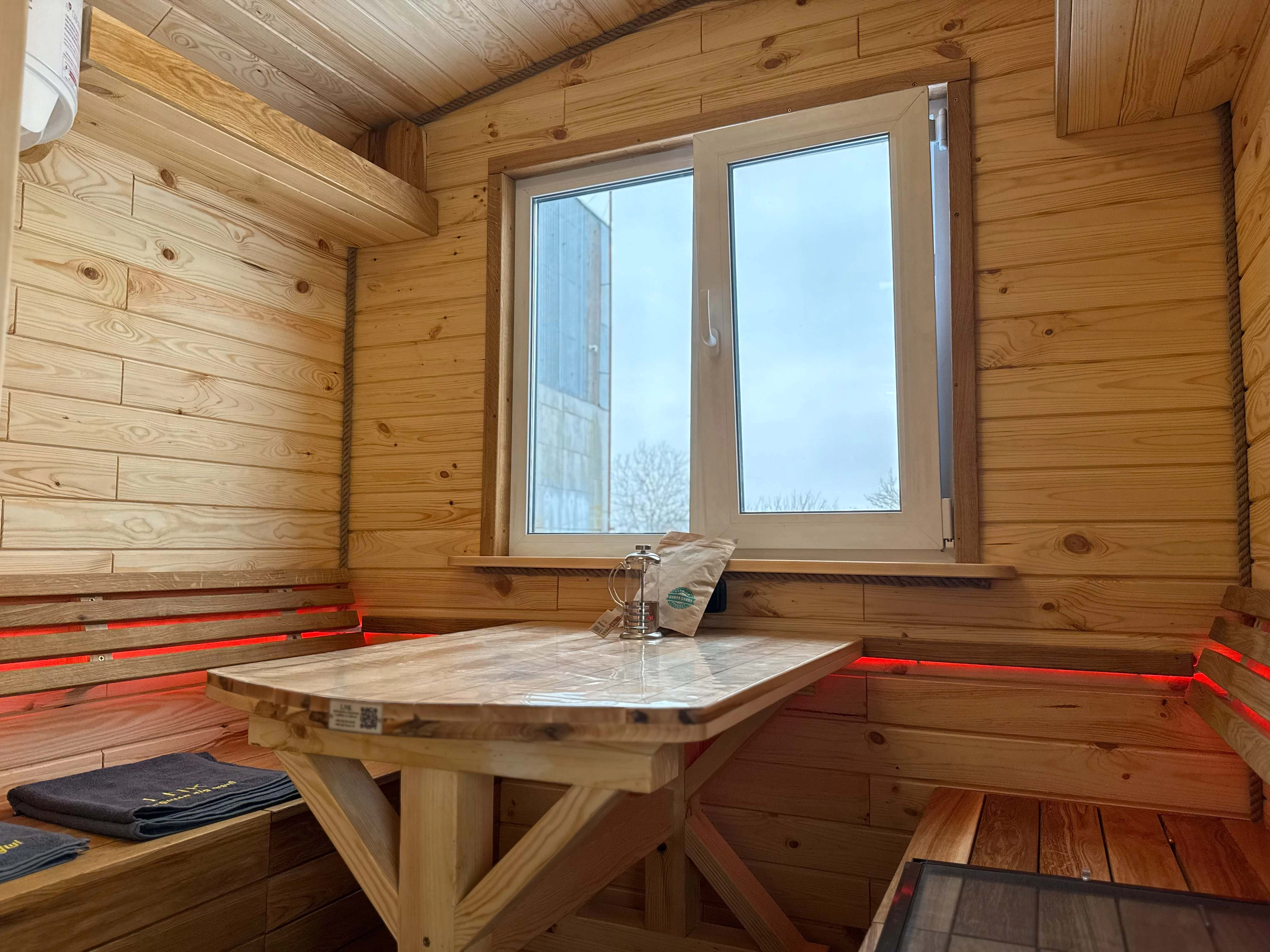 Активна вентиляція в кімнаті відпочинку з декоративною дошкою. (Це важливо для провітрювання бані в процесі паріння та без використання, баня дихає та не має плісняви)